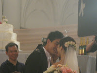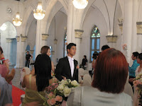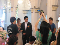FINALLY i can friggin' create a new entry!! Here are the pics I took outside of CHIJMES and iniside on Monday morning (for the quadraple wedding ceremony for the last episode of "Bao Jia Wei Guo")... ermmm, Im real sorry for missing out on Wen Yong and Hui Fang btw, cos while the extras were allowed to take pictures during actual filming (flash function had to be off btw), we had to keep the pic snapping to a minumum in order to let things run smoothly with few cuts.