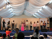 The first contestant was a middle-aged Filipino lady named Ruby, and she sang "Don't Cry Out Loud"... her voice was simply POWERFUL!!! Kimberly was the second contestant for the qualifying rounds, and I can see that her voice has definitely improved from last year (so has her confidence). Mohd Faliq then came out and sang an earnest rendition of R Kelly's "I Believe I Can Fly". Fourth contestant was Glen Tiew who sang a not-so-good rendition of Elton John's "Circle Of Life". 5th contestant was a young girl named Phoebe (who sang some cheena song). Then came a rather effeminate guy named Sharezan who sang Michael Buble's "Sway". Cute Filipino named Elliot Miranda sang a song from Les Miserables. Followed by 2 young kids named Shelley and Makin... a gal named Violet killed off FIR's "Fly Away", then a certain Siau Yeun sang an ok-sounding song. Poly grad Daniel then got on stage to sing Wet Wet Wet's "Love Is All Around", which actually sounded betetr than Glen's item. Followed by another Filipino singer... and I never thought that ex-colleague Deborah was the last contestant for that talent competition!! Indeed I saw Bonnie and Savina among the crowd, and they noticed me only after they got off their seats!! And that happened when I already noticed them first for abt 15 minutes!! :-D