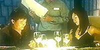 "Love Blossoms" made its long-awaited debut last night, I must say the show is quite worth the watch, wonderful acting from the cast members. However, there was one brief scene that nearly made me fall off my chair... some rotten soul made a cameo as a waiter in the restaurant scene where Fel and Adam spent their Valentine's Day dinner. Because I was drinking some water at that time, I spat it out the moment I realized who it was (you know, like Triple H). Good thing I had early dinner, otherwise I would be choking non-stop. No wonder poor Fel looks horrified to see him (not Melody or Wang Yuqing). Since his qian bian face sickens me (and many other people too) greatly, I had to edit the screencap by 'decapitating' him. At least it's better than vandalism right? ;-) He doesn't deserve any respect or recognition for his rotten and obsessive behavior.