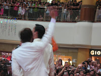 This was the overall response after 1430 hrs!!! Superbly crammed til cannot breathe at all man!! The kids aged below 12 perhaps had the most difficult time squeezing through the crowd. Due to the overwhelming response, the escalators had to be stopped for the next one hour or so for the people to stay put and watch the event. According to the Channel 5 and 8 news, the total number of people present for the event from ground floor to 4th level totalled to about 5000!!! Wah piang eh... even the last Singapore Idol season 2 roadshow at Causeway Point and the Hype Up roadshow at Jurong Point didn't contain that many people lor!!! @_@