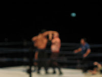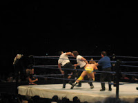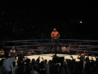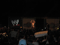 After that, I headed to the merchandise stall to wait for Tris... all the Batista, Undertaker and Edge shirts got sold out by 1915 hrs. Me and tris then went up to the North Entrance of the stadium... where we encountered impersonators of the Boogeyman, Kane and Jimmy Wang Yang. The queue outside was like freaking long, but it didnt really matter (after all, we got da tix to the show). At 8 pm exactly, the show begun... TIME TO RUMBLE!!!