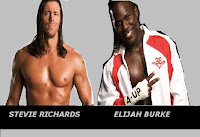 The former bWo member managed to hit a Stevie Kick onto the New Brood leader, and Elijah managed to hook his leg onto the rope for the save. Moments later, Elijah rolled up Stevie and stole the win with his feet on the ropes for leverage... CHEAT!!!