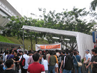 School as usual... attendance was slightly better, but my dissent towards the soon-to-fail students remained (same goes to those who chose to work at night rather than sleep early and go to school). Having nothing much to do at home (esp since I got the day off from work), I decided to go out to Plaza Singapura, for there was a roadshow on "881", a Royston Tan film on the origins of getai. The cast arrived at around 2030 hrs... first to come up on stage were the Papaya Sisters played by Mindee Ong and Yeo Yan Yan. Soon after came the Durian Sisters played by VJ twins May and Choy... then Royston Tan and Qi Yuwu went on stage.