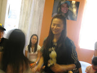 Later at 1645 hrs, after game session had ended, we were allowed to take out our cameras and start taking pictures already... we sang a birthday song for Fel, and then we gathered for group photos (fyi her actual birthday is on 24th Oct). There was enough time for each one of us to present our gifts plus mini-projects to Felicia, take picture with her, and then get her autographs on various photos or magazines. I bought for Fel something small and simple (no point buying her another soft toy since I already did so in May), and I soon realized that I had gained some 'extent of contol' over my weakness with pretty gals!! But I still felt a little shy when it was my turn to chat with Fel... at least my legs didnt go wobbly like before, heh! :-p