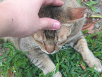 On my way back home from work earlier today, I saw Bonnie sleeping near the lift lobby as usual... but what I saw truly amazed me (it was rather cute, I thought). Lol, someone actually left a cigarette near Bonnie?? Or was it already there by mere coincidence at the time when Bonnie decided to catch 40 winks at said region? Or don't tell me... Bonnie was "smoking" (no wonder she's so fat and lazy)??? NAHHH CAN'T BE LAH... nevertheless, I cautiously picked up the cigarette and flung it very far away from where Bonnie was napping. I then proceeded to give Bonnie a nice pat on the head. I can't afford to see such offending stuff near an innocent creature like Bonnie (esp since cigarettes were the main cause behind my uncle's passing 4 years back). Seems like Bonnie is the only cat left for me to confide in, esp since I hadn't seen Visuel and Felix (the other 2 cats I adore) for nearly 2 weeks already... don't tell me they've gone to 'the same place' that er, Michael Jackson did? :-(((