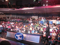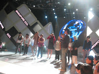 2100 to 2200 hrs: "Sing-Along Idol" during the 1-hour time lapse between the Performance Show and Results Show. The wubbie brought out 10 fans from Mosh Pit or sector seats to showcase their vocal prowess, just to have fun. The guest judges were Justin Jap, Farhan Shah, Gabrielle Ferdinands (from the 2nd Piano Round), and Iskandar Saad (the official Idol blogger). That Ah Quah who was present at the roadshow at Plaza Singapura on Sunday was one of the contestants, he called himself "Sherry Tan" (urghhh!!) and he sang a song by Rihanna!! Among the other 9 fans included Tabby's sister Serene and Sezairi's mother. One young boy managed to get the fans standing up and clapping to "Billie Jean". At around 9.40 pm, Gurmit came out with Charles and Faizal... eventually they got surrounded by lots of people (waving banners) in preparation for the live footage for the Channel 5 news. Oh, and there was also a filming segment for the Top 8 Idols music video... everyone in the theater is part of it!! :-)