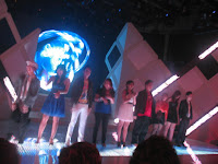 The Top 9 get on stage for the Results Show, while the judges return to their seats... in 30 minutes time, the number will dwindle down from 9 to 8.